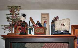 Carol's Country Corner and she carries primitive and country goods. You could walk around a second time and see things you missed the first time, so a fun activity for a rainy day. There were a lot of wonderful prims and some antiques and I took some photos, but most came out bad or blurry. This was one of my favorite displays, wouldn't this set up, be fun in a corner of the house.