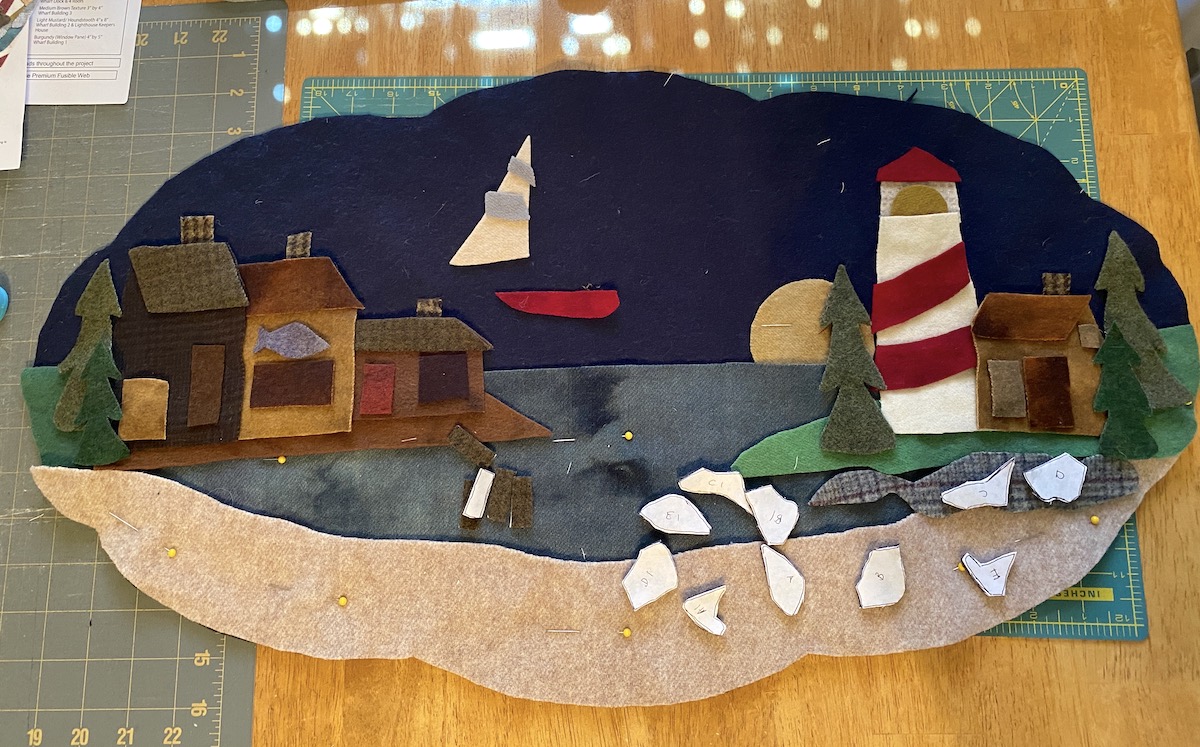 Another slow week, seems there is too much to do in a day and not enough time to craft. I am sure my afternoons at the beach is eating into that time, but time well spent. I have been working on my wool piece. I have to set things down and make sure everything is straight, sew a few things on and redo things for the next ones.